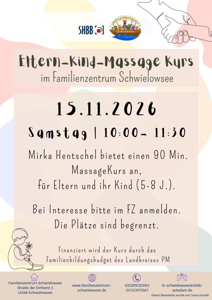 Bitte melden Sie sich telefonisch (033209/203911) oder schreiben Sie eine Mail.
