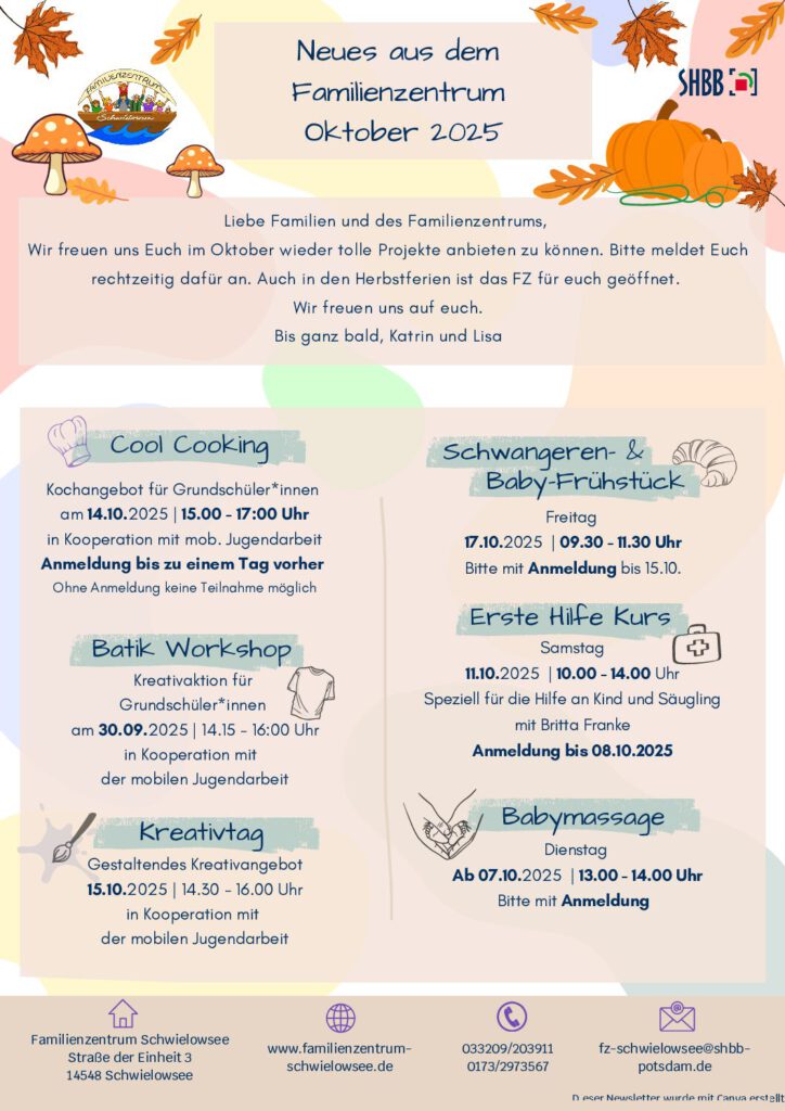 Bitte melden Sie sich telefonisch (033209/203911) oder schreiben Sie eine Mail.